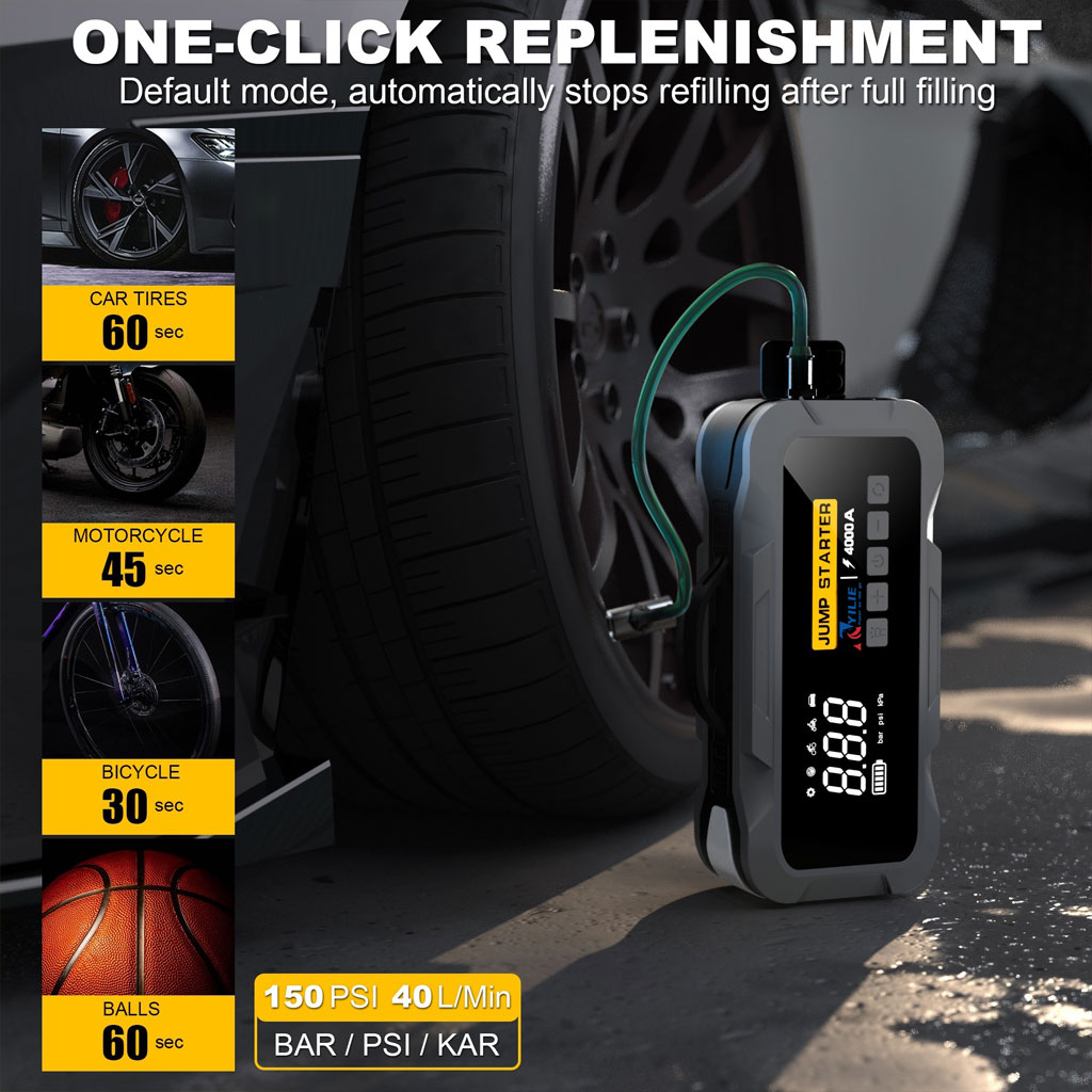 ✅ أداء متعدد الوظائف: ضاغط + بطارية خارجية + كشاف + بوستر