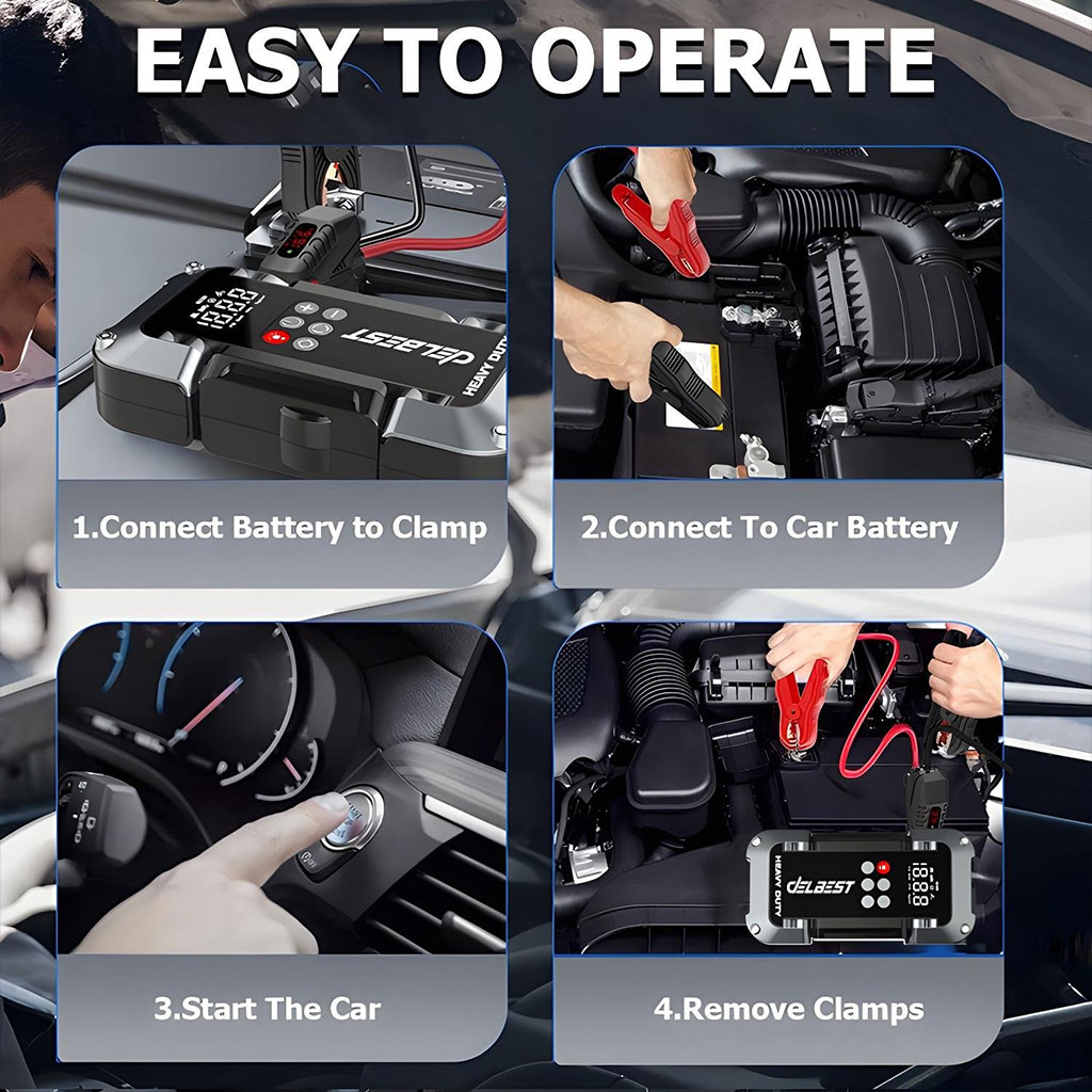 🔋 سعة خارقة و أداء قويتمتع ببطارية بسعة 26000mAh / 96.2Wh تمنحك طاقة تدوم طويلاً، مع تيار تشغيل يصل إلى 3750A لتشغيل أي نوع من السيارات، حتى الأقوى منها 🚗🔥