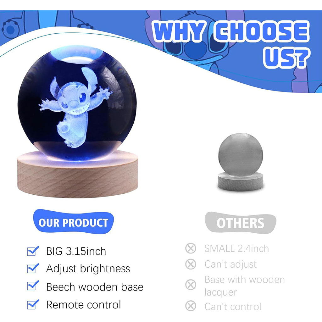 🌻 كرة الكريستال ثلاثية الأبعاد – إضاءة رومانسية ساحرة