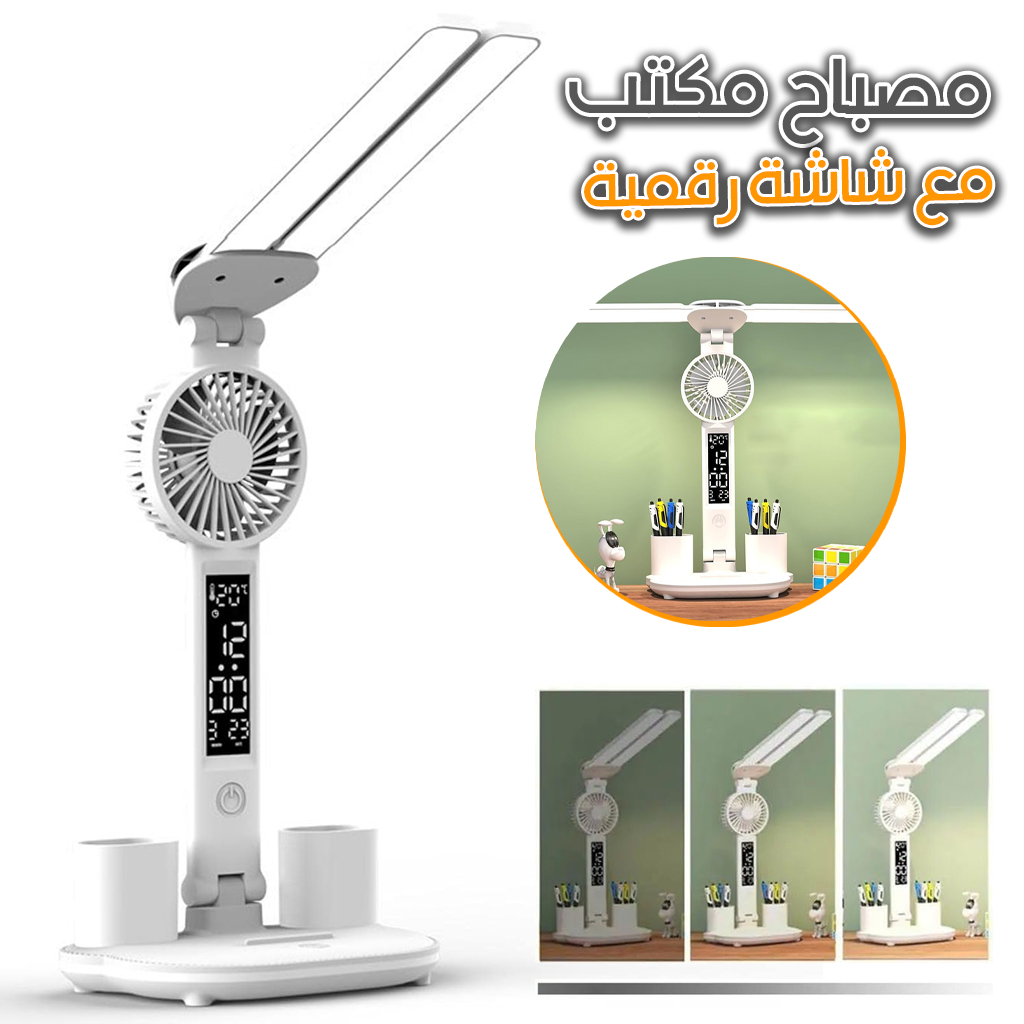 💡 مصباح مكتبي متعدد الوظائف مع مروحة وشاشة ذكية