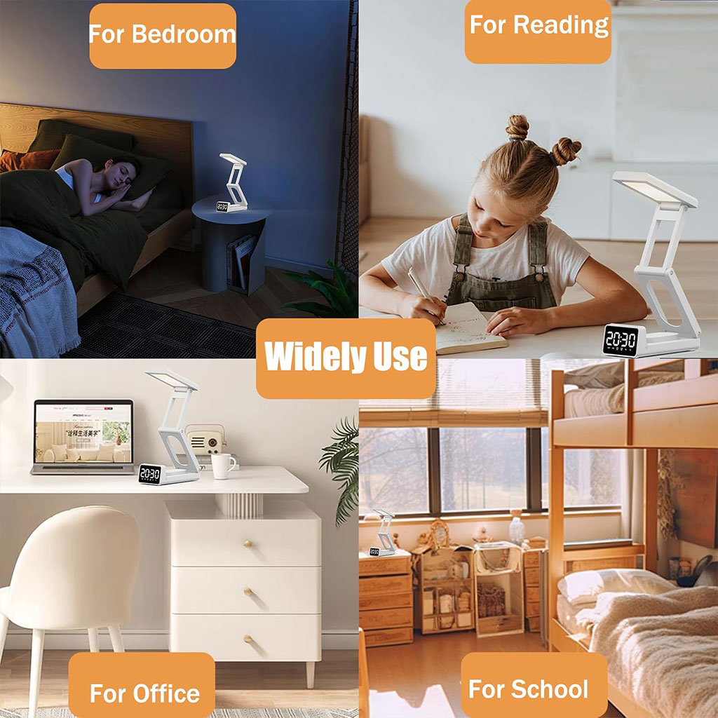 Lampe de bureau rechargeable sans fil avec réveil LED et power bank 5000 mAh – مصباح مكتب ومصباح مع شاحن متنقل