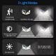 3 أوضاع إضاءة:وضع الأمان (الإضاءة عند مرور الأشخاص).إضاءة مستمرة طوال الليل.تحكم ذكي بالسطوع (إضاءة خافتة طوال الليل وتزداد عند الحركة).لوح شمسي عالي الكفاءة: خلايا سيليكون أحادي البلورة بنسبة تحويل تصل إلى 20.5٪ لتوليد طاقة أكبر بنسبة 15٪ مقارنة بغيرها.إضاءة أوسع: مزودة بـ 100 LED وزاوية إضاءة 270° لتغطية مساحة تصل إلى 30 متر.مقاومة للماء IP65: مصنوعة من بلاستيك ABS مقاوم للحرارة والتآكل، لضمان عمر أطول.