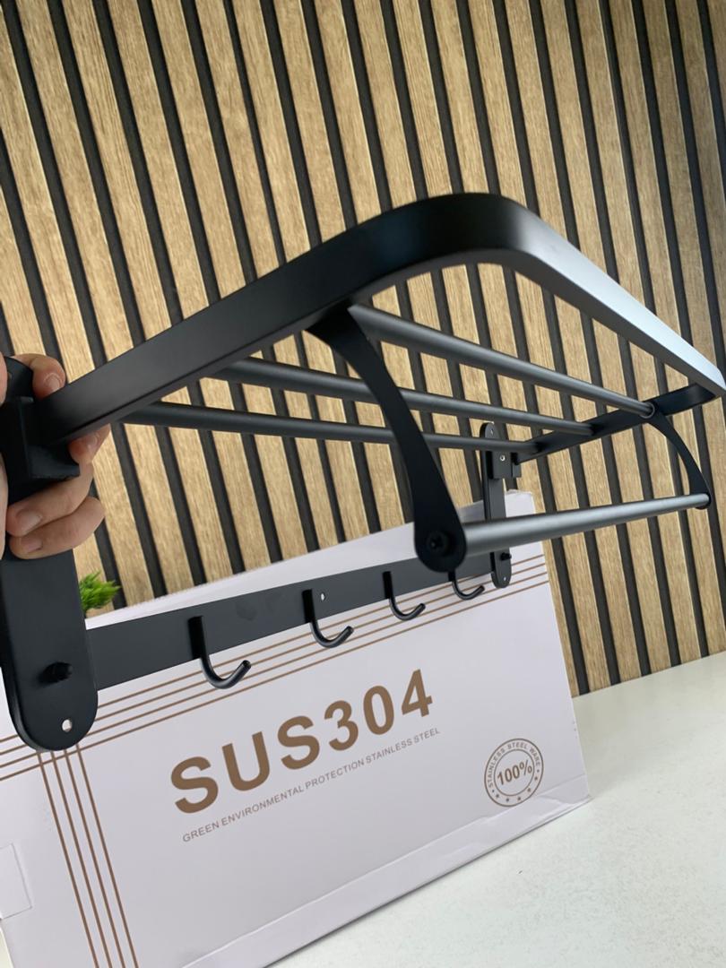 🛁✨ رفّ مناشف جداري مزدوج من الفولاذ المقاوم للصدأ – تصميم فاخر وأداء متين 🖤