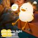 مصباح ليلي للأطفال على شكل بطة لطيفة من السيليكون مع زهرة على الرأس. يمكن تشغيله وإيقافه باللمس، كما يتميز بملمس ناعم يمكن الضغط عليه كالألعاب المرنة. يصدر ضوءًا دافئًا ومريحًا يوفر جوًا آمنًا ويساعد الأطفال على النوم بعمق طوال الليل.